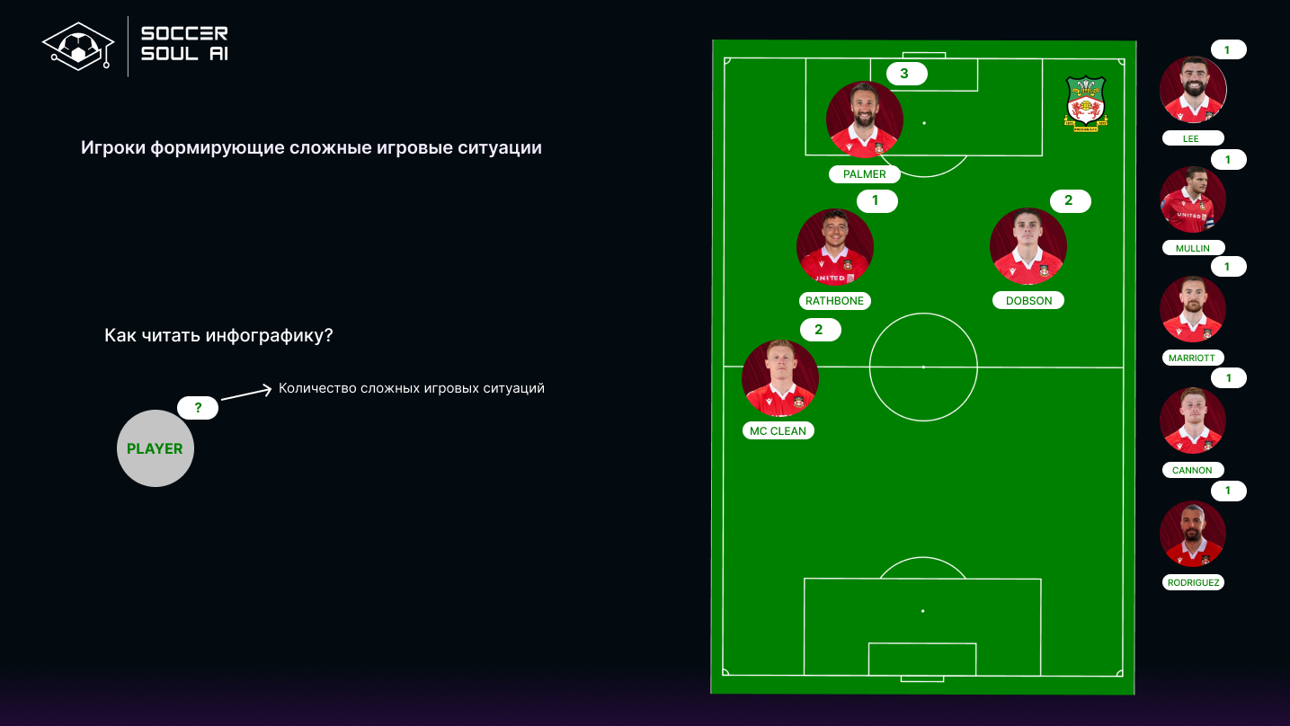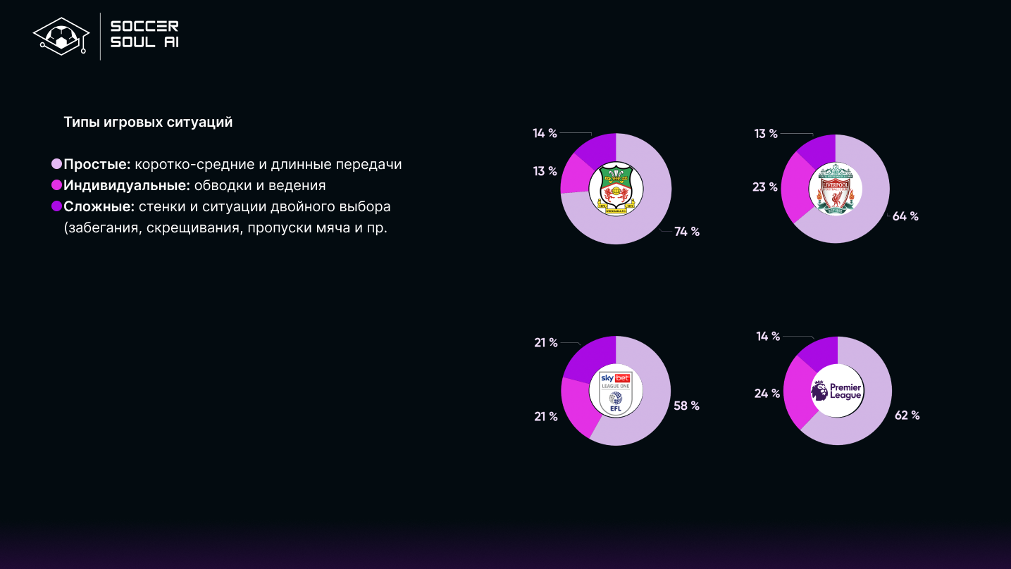 Типология игровых ситуаций Рексхэма выделяется как аномалия с точки зрения низкой доли индивидуальных ситуаций, как в сравнении со срезом Премьер-лиги, так и в отношении EFL Лиги 1.