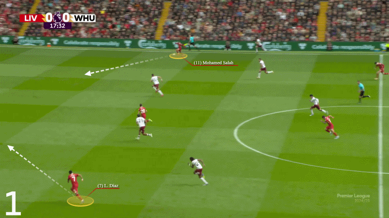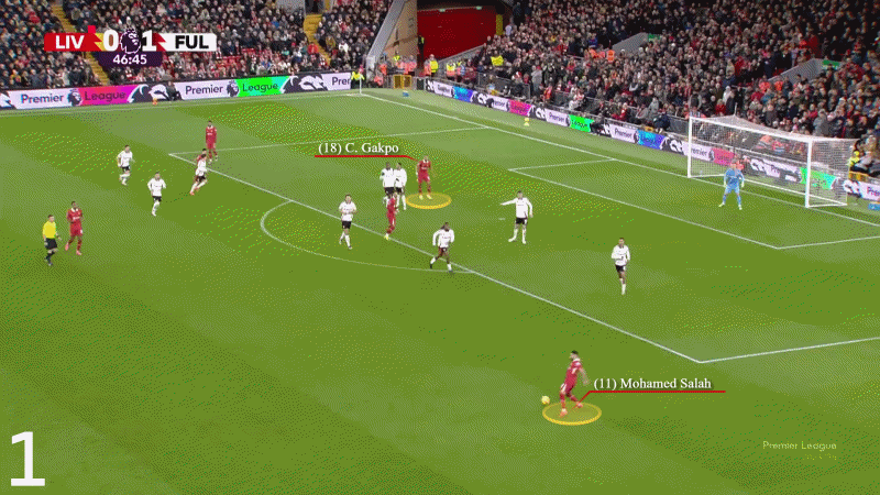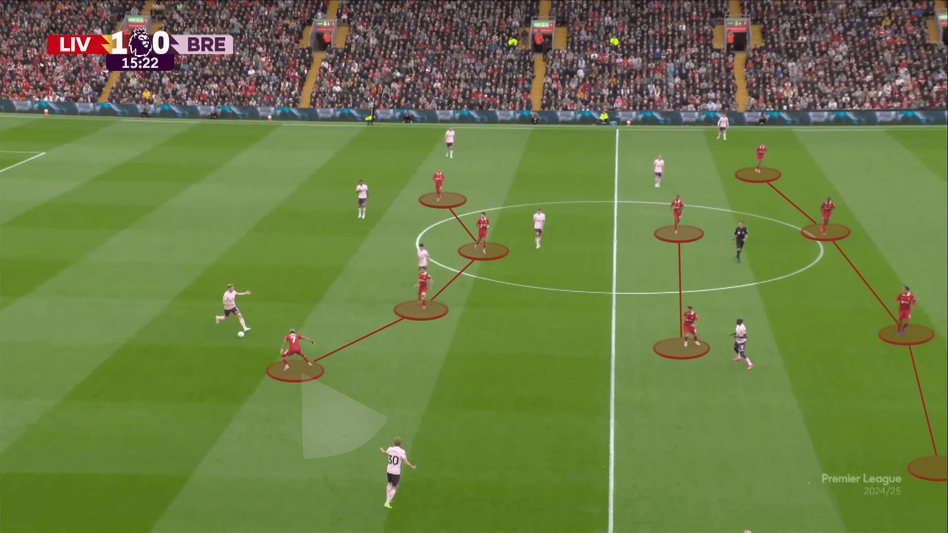Их навесы и проходы под фланги сыграли решающую роль в создании ситуаций один на один для Салаха и Коди Гакпо или Луиса Диаса на противоположном фланге. Также увеличилось количество комбинаций вингер - вингер. Передачи Салаха на дальнюю штангу на Гакпо — до того, как тот получил недавние проблемы с травмами — были постоянной темой.