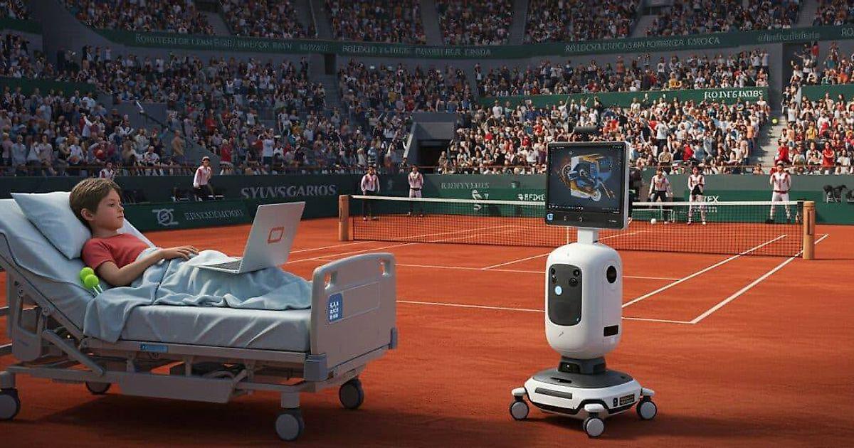 Организаторы Ролан Гаррос запустили робота, управляют им дети, проходящие лечение в больнице. Прямо с больничной койки ребята могут завернуть куда угодно и глазами робота увидеть закулисье турнира Большого шлема и пообщаться с его звездами.