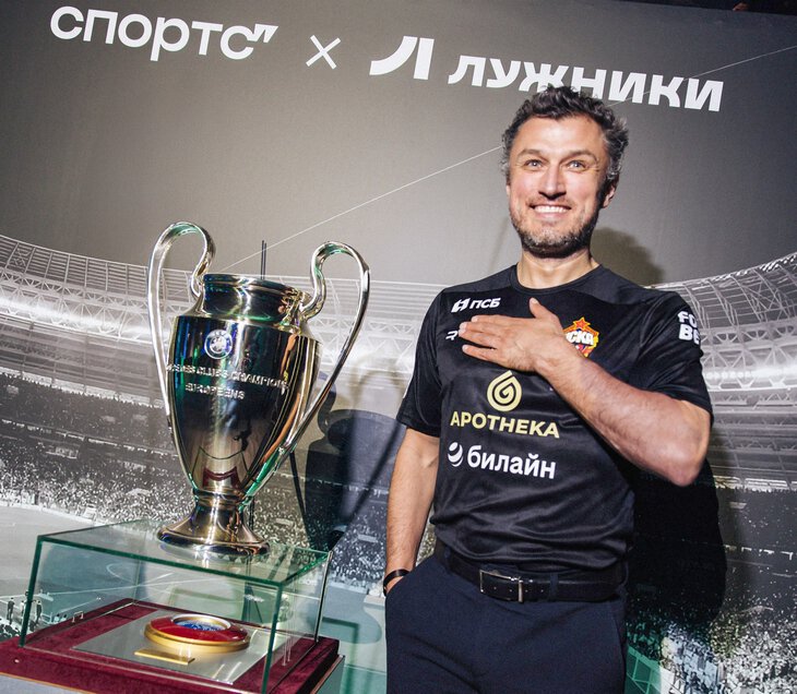 Врач ЦСКА Эдуард Безуглов тоже позирует – у копии кубка Лиги чемпионов. Ее подарили «Лужникам» за проведение финала ЛЧ-2008.