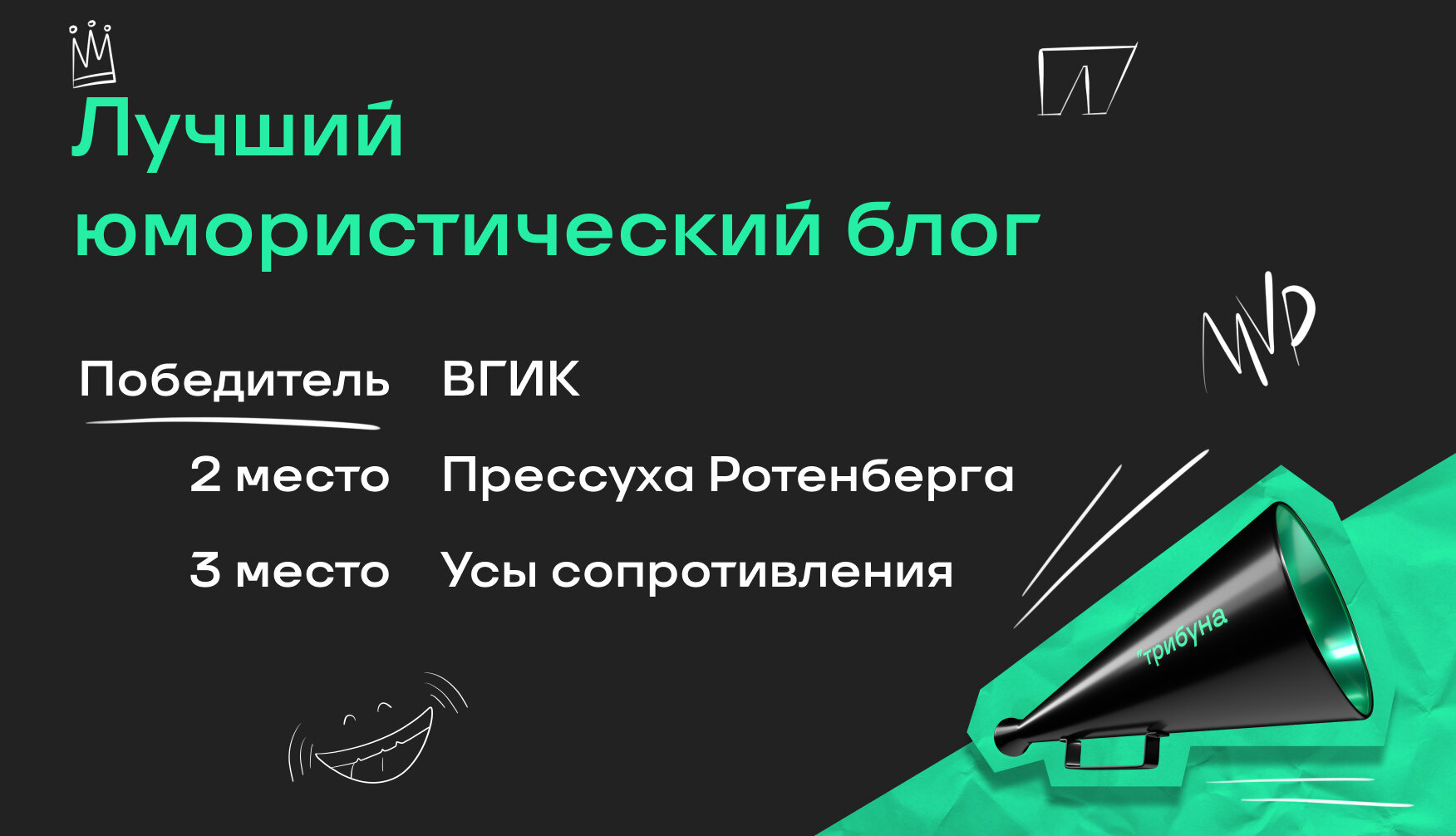 В самой серьезной номинации выиграл Кирилл Хаит. «Диего Симеонович» получил рупор из рук Вадима Лукомского и Александра Дорского.