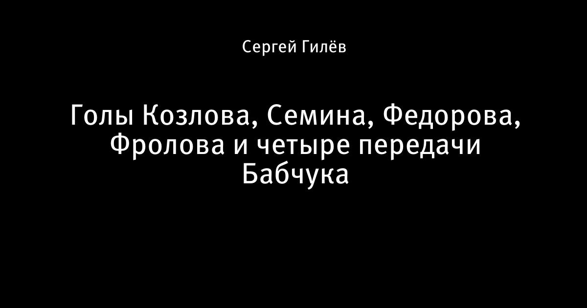 8 апреля 2009, 13:20 Голы Козлова, Семина, Федорова, Фролова и четыре передачи Бабчука Россияне в НХЛ 7-го апреля.Виктор Козлов. Семин. Федоров. Фролов. Бабчук. Автор Сергей Гилёв Этот пост опубликован в блоге на Трибуне Sports.ru. Присоединяйтесь к крупнейшему сообществу спортивных болельщиков! Другие посты блога Айс-ТВ