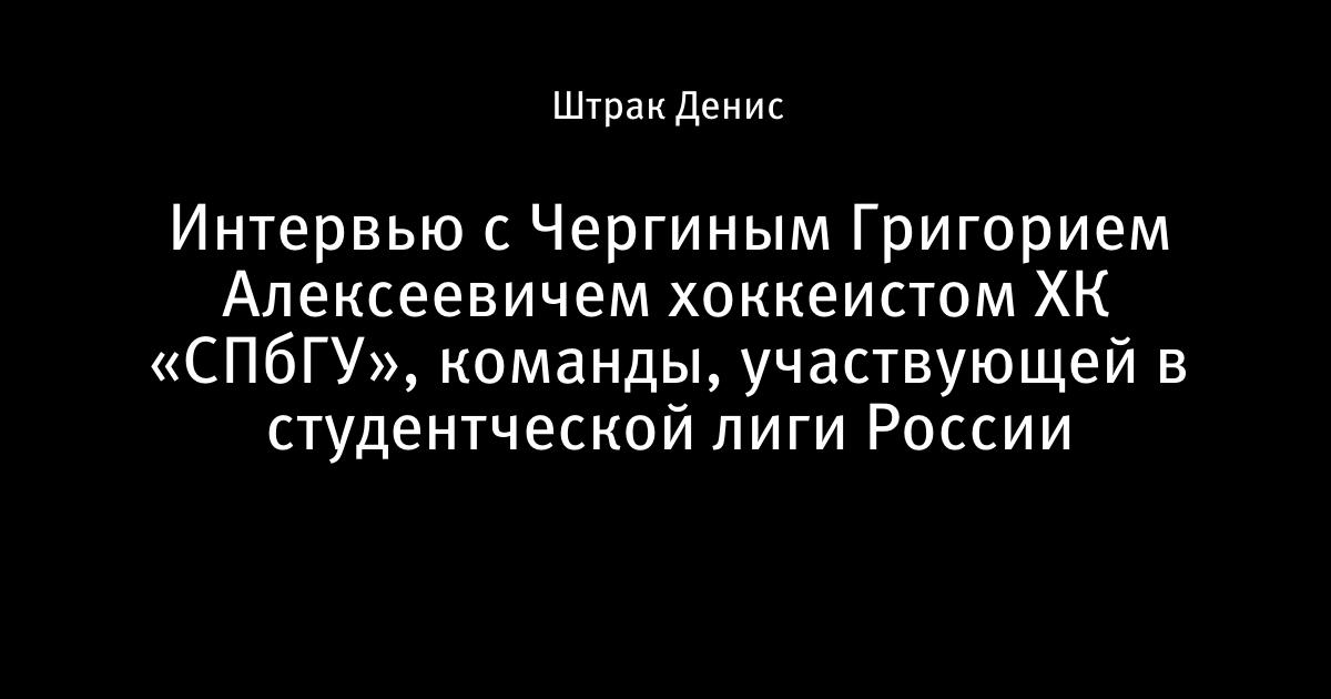Интервью с Чергиным Григорием Алексеевичем хоккеистом ХК «СПбГУ», команды, участвующей в студентческой лиги России