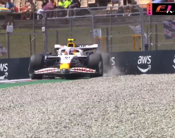 * Лоусон прихватил гравия и бросил быстрый круг. На том же повороте цепляют гравий Саинс и Ферстаппен;