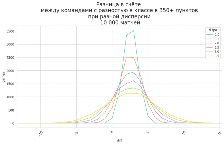 Кроме фактора разницы в классе на развитие матча влияет дисперсия (и связанная с ней волатильность). Это мера того, насколько широк разброс случайности результатов возможен. Она не зависит от класса команд (но может зависеть от их игрового стиля). А ещё она зависит от внешних условий (погода, качество поля, характер судейства, наличие VAR или дополнительных арбитров)