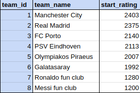 Как это? Очень просто: выбираем случайную пару команд и они играют. Потом ещё одну. И ещё. Всё сводим в турнирную таблицу. Ключевой показатель: среднее количество очков за матч.
