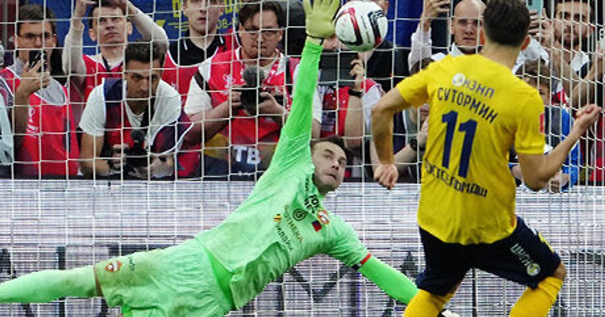 Москвичи отправили мяч в сетку уже на девятой минуте: Иван Обляков сыграл на подборе после подачи штрафного и мощнейше пробил нерабочей правой метров с 25. Летело прямо во вратаря Рустама Ятимова, и он с такой пушкой не справился: мяч от кулаков запрыгнул в ворота.
