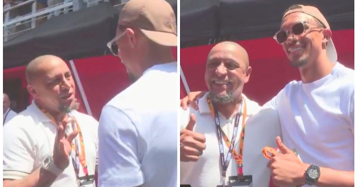 Перед началом гонки на видео, снятое журналистами, попали легенда «Мадрида» Роберто Карлос и новичок «сливочных» Трент Александер-Арнолд. Бразилец перехватил англичанина у боксов «Феррари» и мы даже сможем услышать, что он ему говорил: дал один, но очень важный совет.