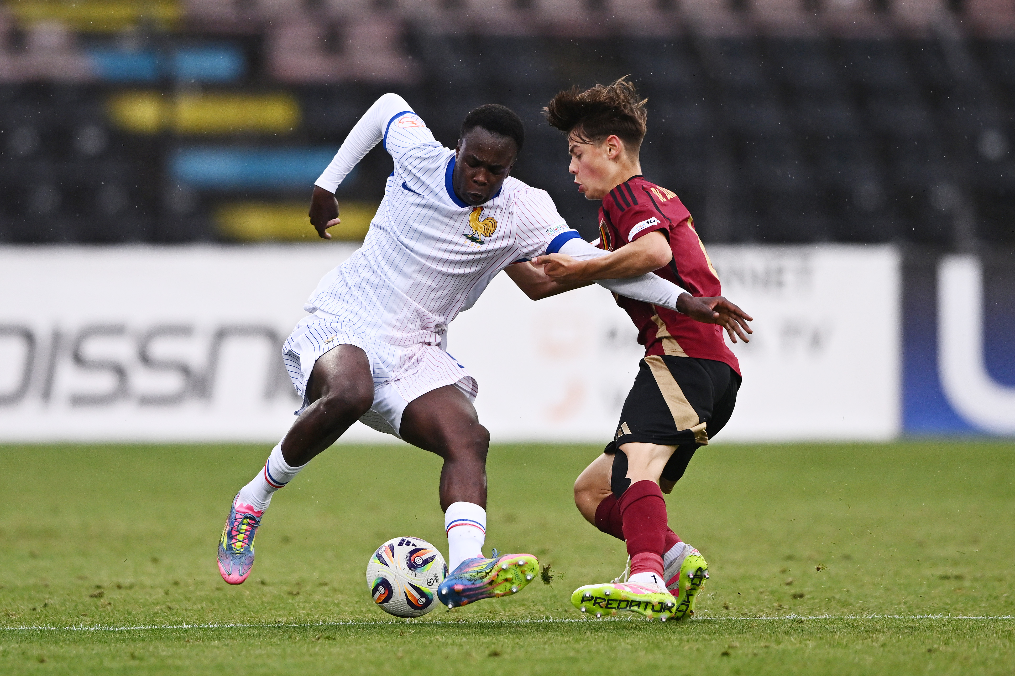 Первый тайм выдался насыщенным на голевые моменты, но гол был забит лишь перед самым свистком на перерыв: Абдулайе Камара мощным ударом низом из-за пределов штрафной отправил мяч в ворота вратаря бельгийцев Люкки Брюгманса. Однако сборной Бельгии понадобилось всего три минуты, чтобы сравнять счет – в компенсированное время Ноа Фернандес уверенно реализовал пенальти.