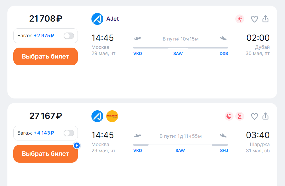 Иногда прямых рейсов в ОАЭ просто нет — особенно если вылетаете из небольшого города или планируете поездку вне сезона. В других случаях билеты на прямой рейс стоят заметно дороже. В таких ситуациях стоит рассмотреть вариант с пересадкой. Это может быть как разумный компромисс, так и способ сэкономить приличную сумму. Главное — грамотно выбрать маршрут.