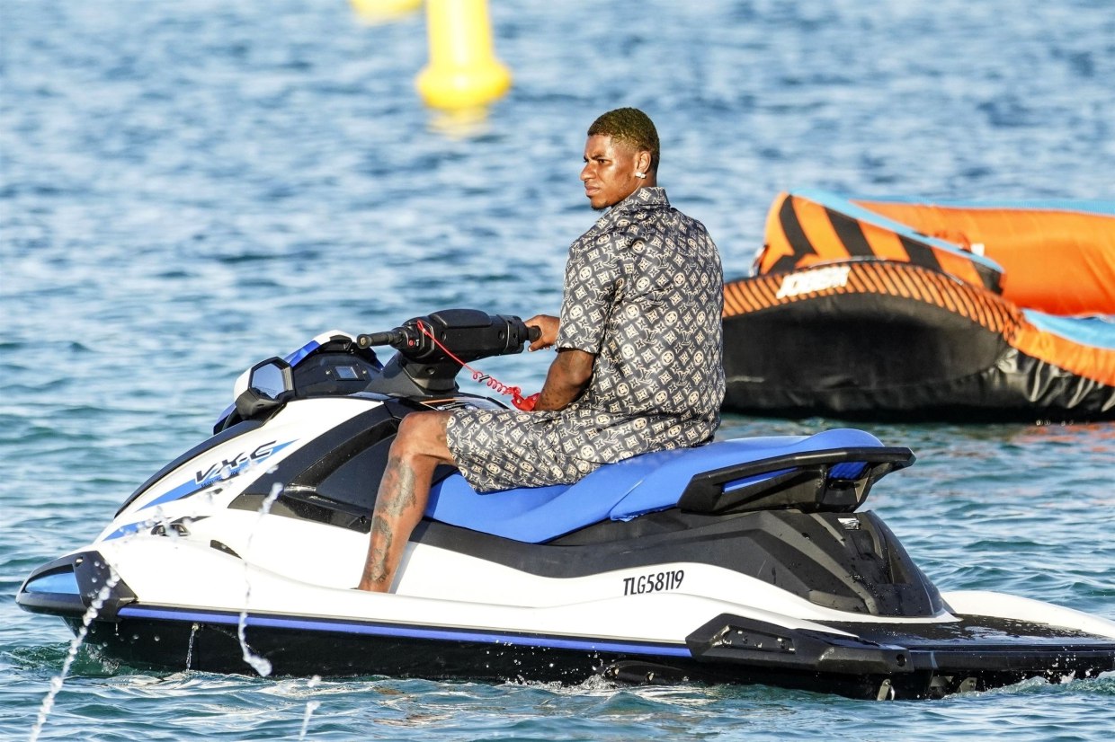 27-летний Рэшфорд выглядел расслабленным на Французской Ривьере. Он привлек внимание окружающих ярким нарядом Louis Vuitton, отдыхая с друзьями на роскошной лодке.