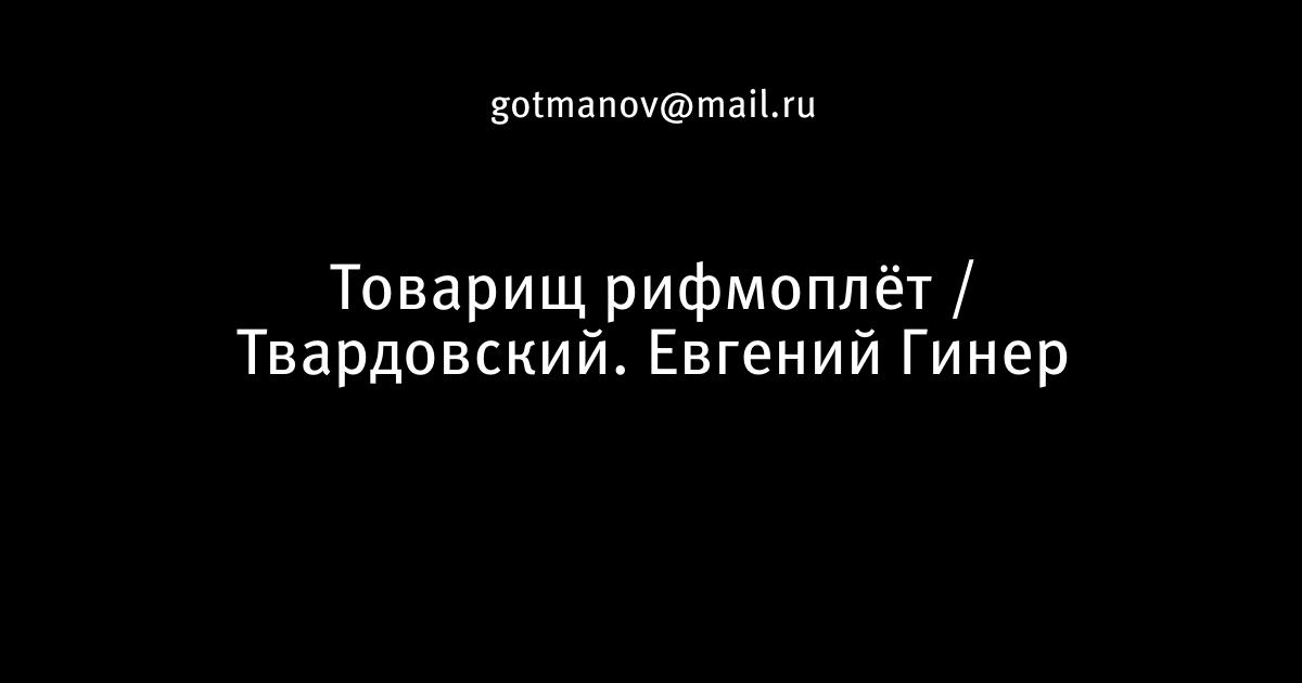 Товарищ рифмоплёт / Твардовский. Евгений Гинер