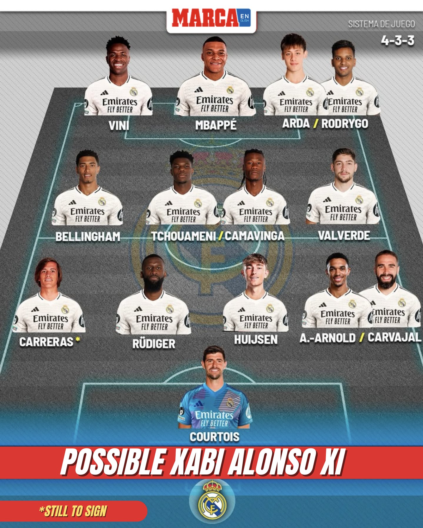 Хаби Алонсо выбрал 4-3-3. Пока что у «Реала» такой состав 👇