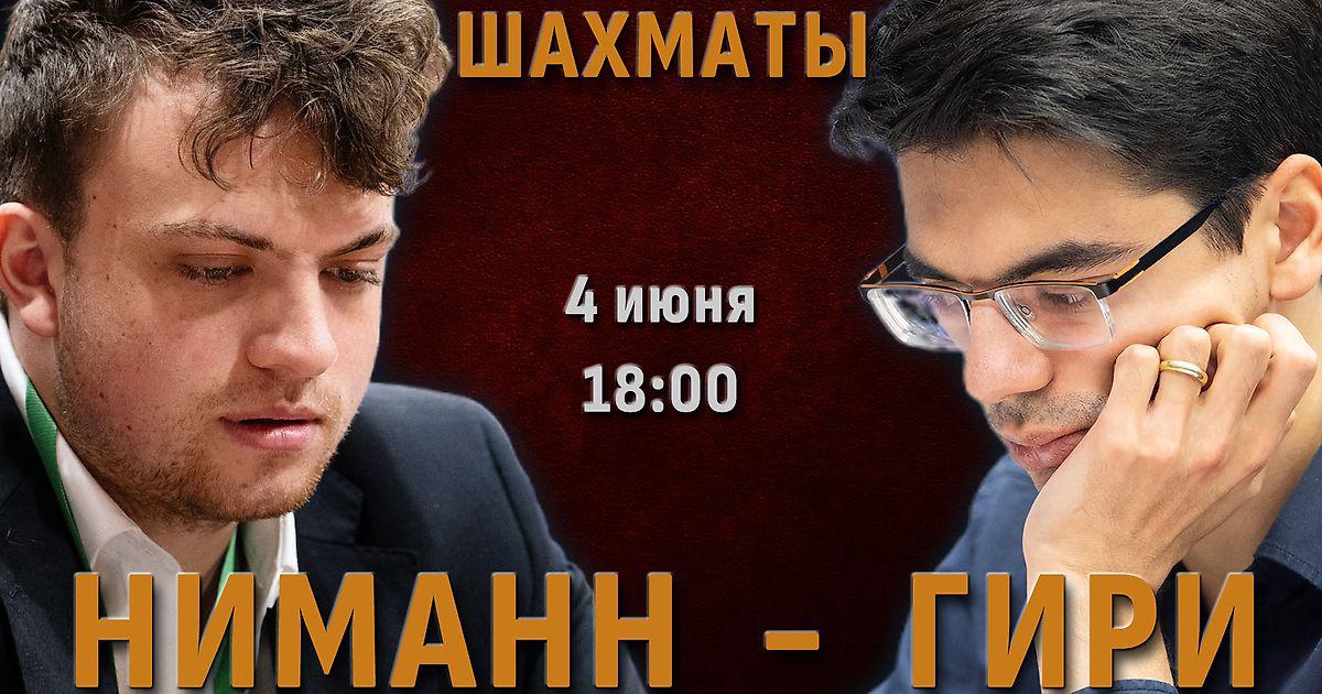 Ниманн - Гири! ⚔️ Блиц-матч ⏰ 4 июня, 18.00 🎤 Сергей Шипов ♕ Шахматы