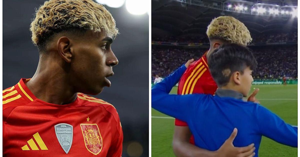 Когда прозвучал финальный свисток, на поле выбежал неожиданный нарушитель. Это был молодой парень, у которого была цель и средство: сфотографироваться с героем матча Ламином Ямалем. И тот ему не отказал.