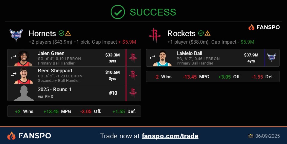 Уж где-где, а в Техасе, Ламело точно не затерялся бы. «Хьюстону» не хватает звезды для перехода на следующий уровень. Команда отлично укомплектована, а добавление в их состав Ламело Болла сделает их большой угрозой на Западе. Я вижу эту сделку идеальной для всех. «Хьюстон» получит звезду, которая им давно нужна. Игрок переедет в команду, которая уже собрана и готова к борьбе в плей-офф. А «Шарлотт» смогут получить много активов, которые можно будет развивать у себя или разменять на пики в будущих драфтах НБА.