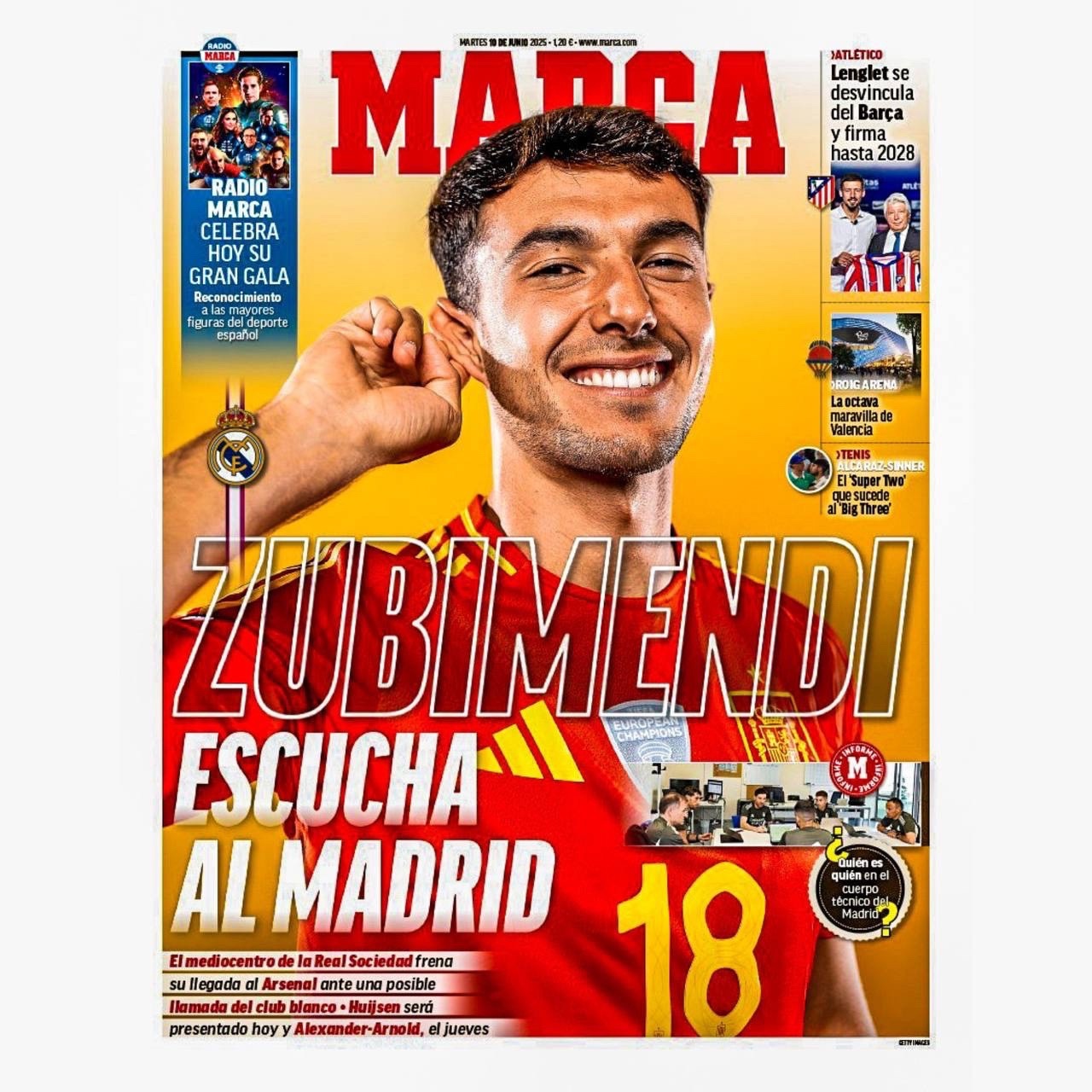 Недавно появилась новость, что во время Лиги Наций Флорентино Перес вел переговоры с тайным игроком, который играет в финале. Были подозрения на Нико и Мендеша. Но неожиданно в газете Marca на обложке стоит Зубименди и выходит тираж с заголовком «Зубименди слушает «Мадрид». И уже начала появляться информация, что испанец откладывает свой переход в «Арсенал» из-за возможного звонка от «королевского» клуба. По некоторой информации трансфер в лондонский клуб был практически завершен, но этот звонок все изменил. Некоторые считают трансфер уже завершенным в «Арсенал». Ждем больше информации.