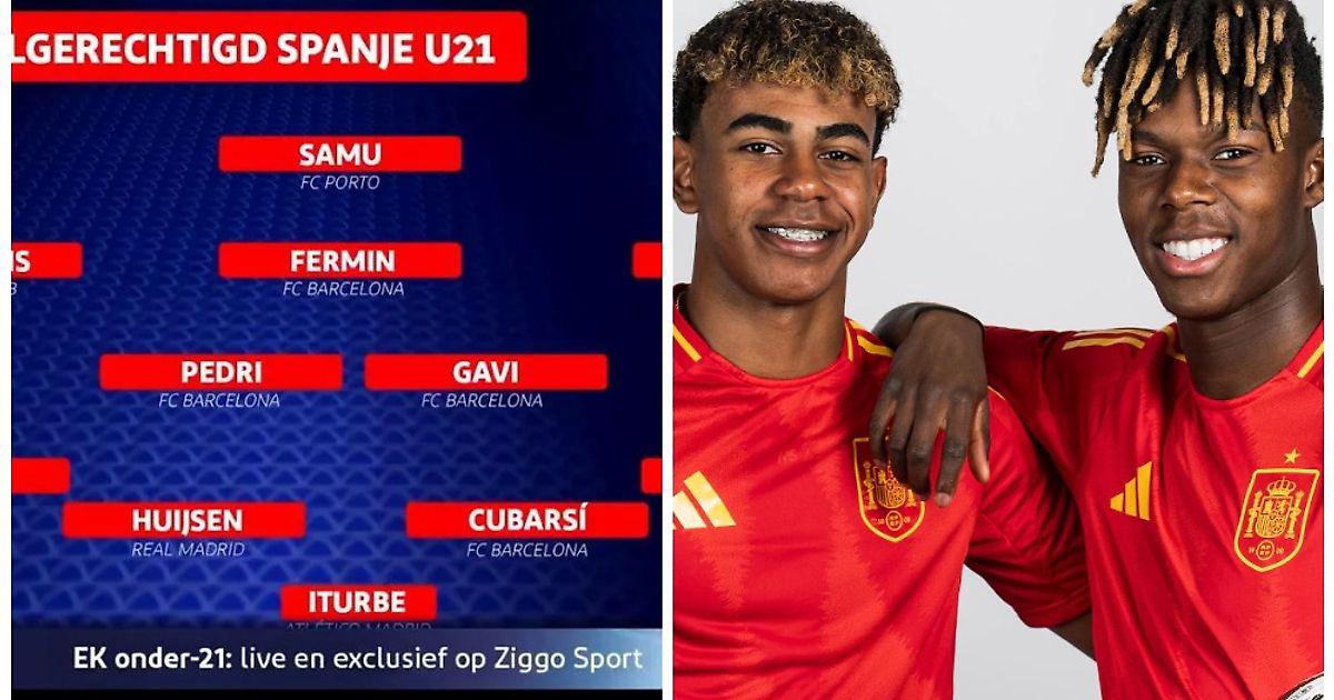 Просто оцените, игроки какого уровня в нее могли бы попасть: Алехандро Итурбе («Атлетико»); Жерар Мартин («Барселона»), Дин Хейсен («Мадрид»), Пау Кубарси («Барселона»), Алекс Бальде («Барселона»); Педри («Барселона»), Гави («Барселона»); Нико Уильямс («Атлетик»), Фермин Лопес («Барселона»), Ламин Ямаль («Барселона»); Саму Агехова («Порту»).