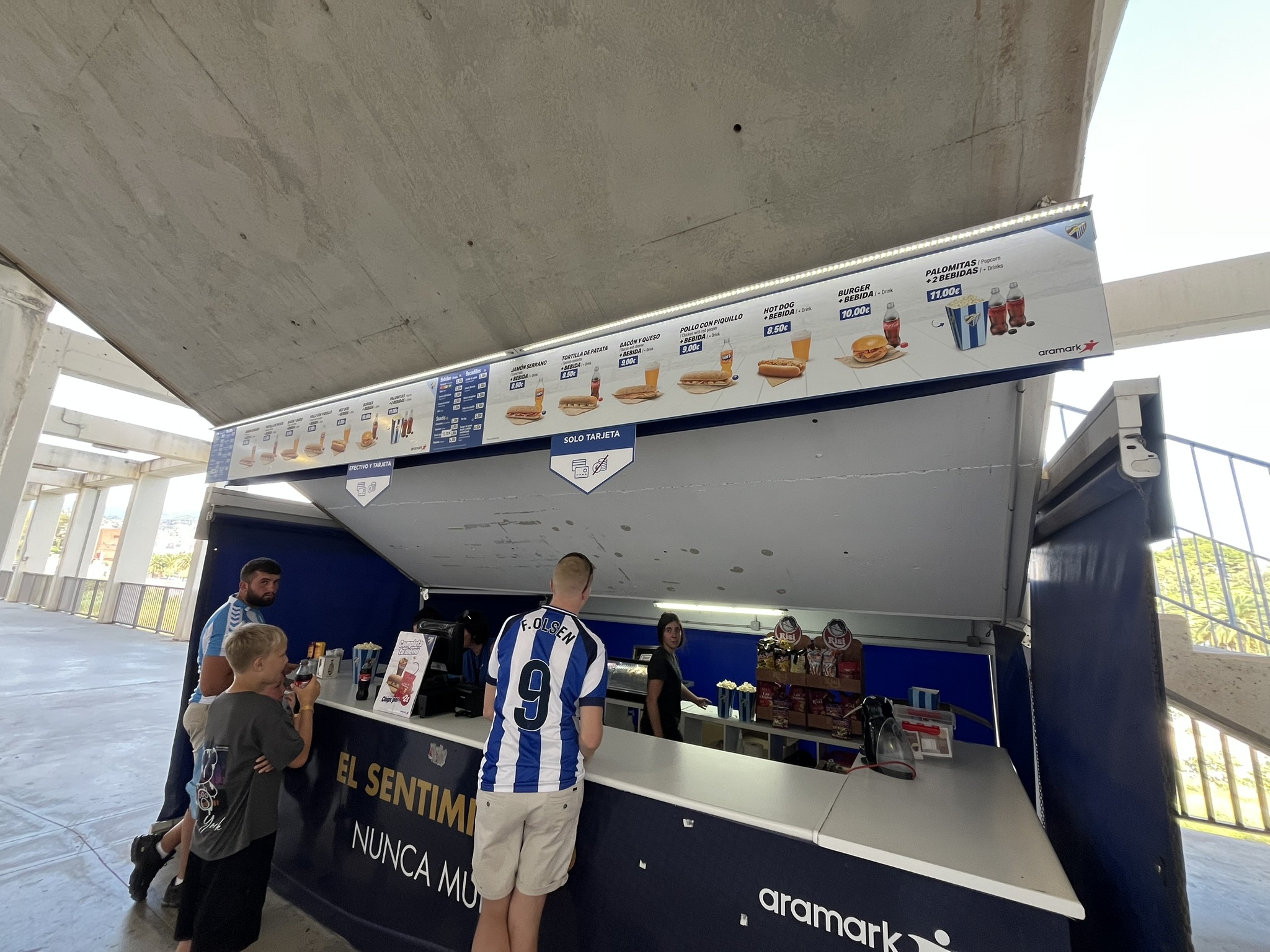 Что касаемо перекуса – тут все просто. Привычных нам сочных колбасок в булке не наблюдалось, вместо них – разные снеки: от чипсов до семечек. Семки – это любимое лакомство испанцев: щелкают и под телевизор, и на корриде, и на футболе. В течение матча не раз бросалось в глаза: многие места были усыпаны шелухой. Воспримем это как часть культуры. Напитки продавались в емкостях со льдом, что было важным.