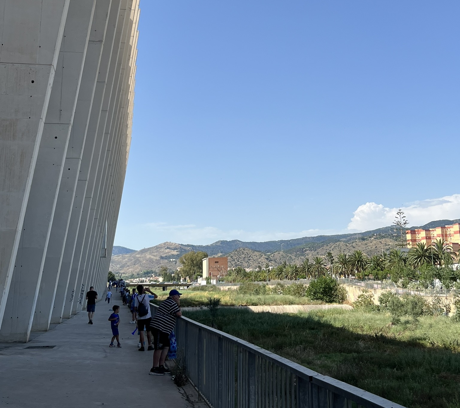 Стадион «Ла Росаледа» был построен еще в 1941 году, но позже прошел масштабную реконструкцию и в 2006-м открылся заново. Вместимость – 30 тысяч. Расположен на правом берегу реки Гуадальмедина. Наверное, когда-то здесь шумела река, но теперь русло все заросло, а местами превратилось в стихийную свалку или место ночлега для бездомных.