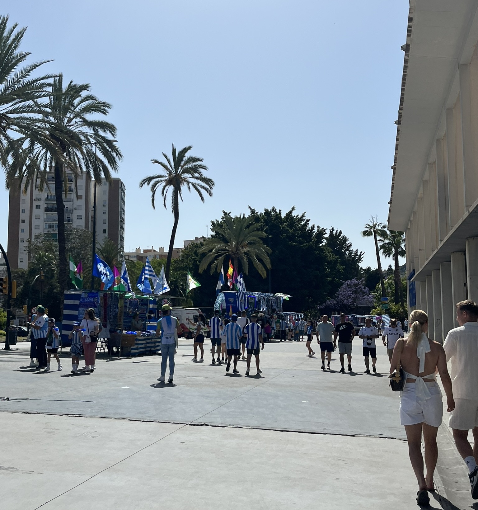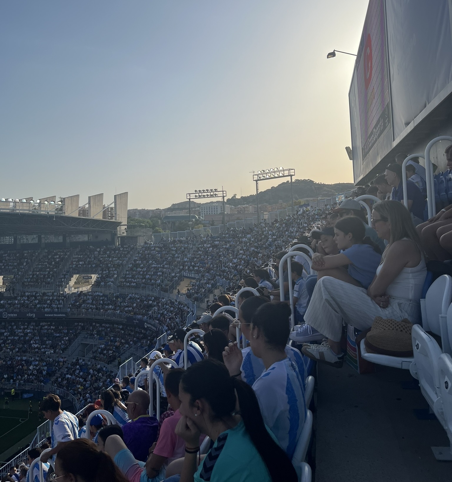 Пообщаться с кем-то не получилось – туристов здесь почти не видно, а местным не до английского, испанским я не владею. Зато сами болельщики оставили приятное впечатление: рядом с ними было комфортно. Любезно подавали руку, если нужно было перейти через узкие ряды, эмоционально реагировали на моменты, но без излишней агрессии. И визуально атмосфера была очень гармоничной – подавляющее большинство носят стильные бело-голубые майки «Малаги».