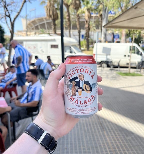 В продаже – один вариант пива. Светлый лагер Victoria Malaga, местного производства. Освежающий, легкий на вкус, без горького послевкусия. Очень популярный здесь напиток – продавался в банках по 0,33 и стоил всего 1,5€. Для похода на футбол (пусть и не наши привычные 0,4–0,5 л) – более чем приятная цена.