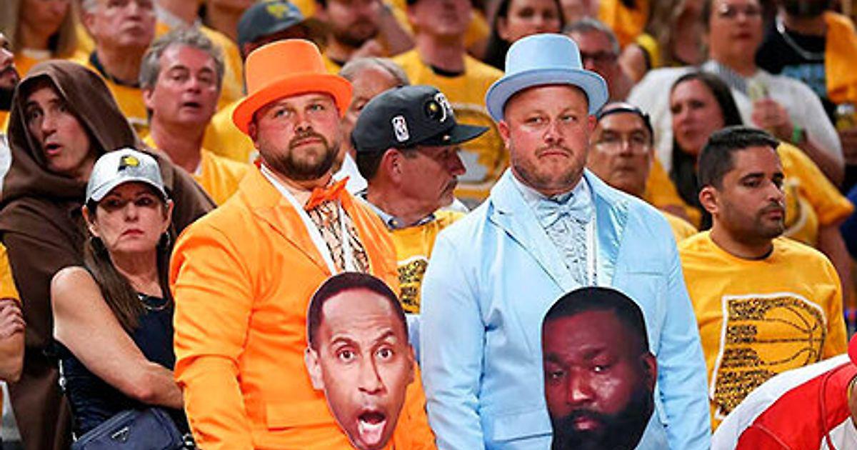 Операторам четвертого матча финальной серии пришлось постараться, но сделать невозможное они не смогли: за спиной главного тренера «Пэйсерс» Рика Карлайла постоянно маячили два типа с первого ряда, облаченные в яркие костюмы из фильма «Тупой, еще тупее». Болельщики не просто переоделись в легендарных персонажей Джима Кэрри и Джефф Дэниэлса, но и повесили на себя изображения ведущих ESPN Стивена Эй Смита и Кендрика Перкинса, которым и была посвящена эта эскапада. Они попадали в кадр чуть ли не в каждом владении и уж точно, когда камеры пытались поймать реакцию Рика Карлайла (этого Джима Кэрри НБА).