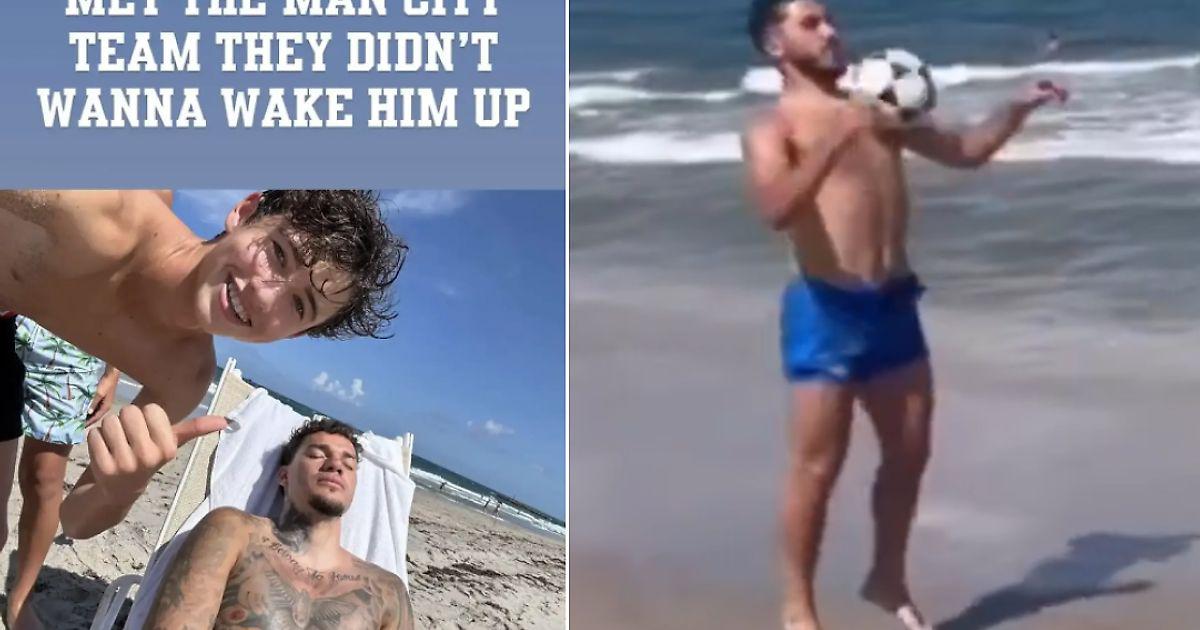Мальчик встретил игроков «Ман Сити» на пляже в США — сыграл с новичком и сфоткал спящего Эдерсона
