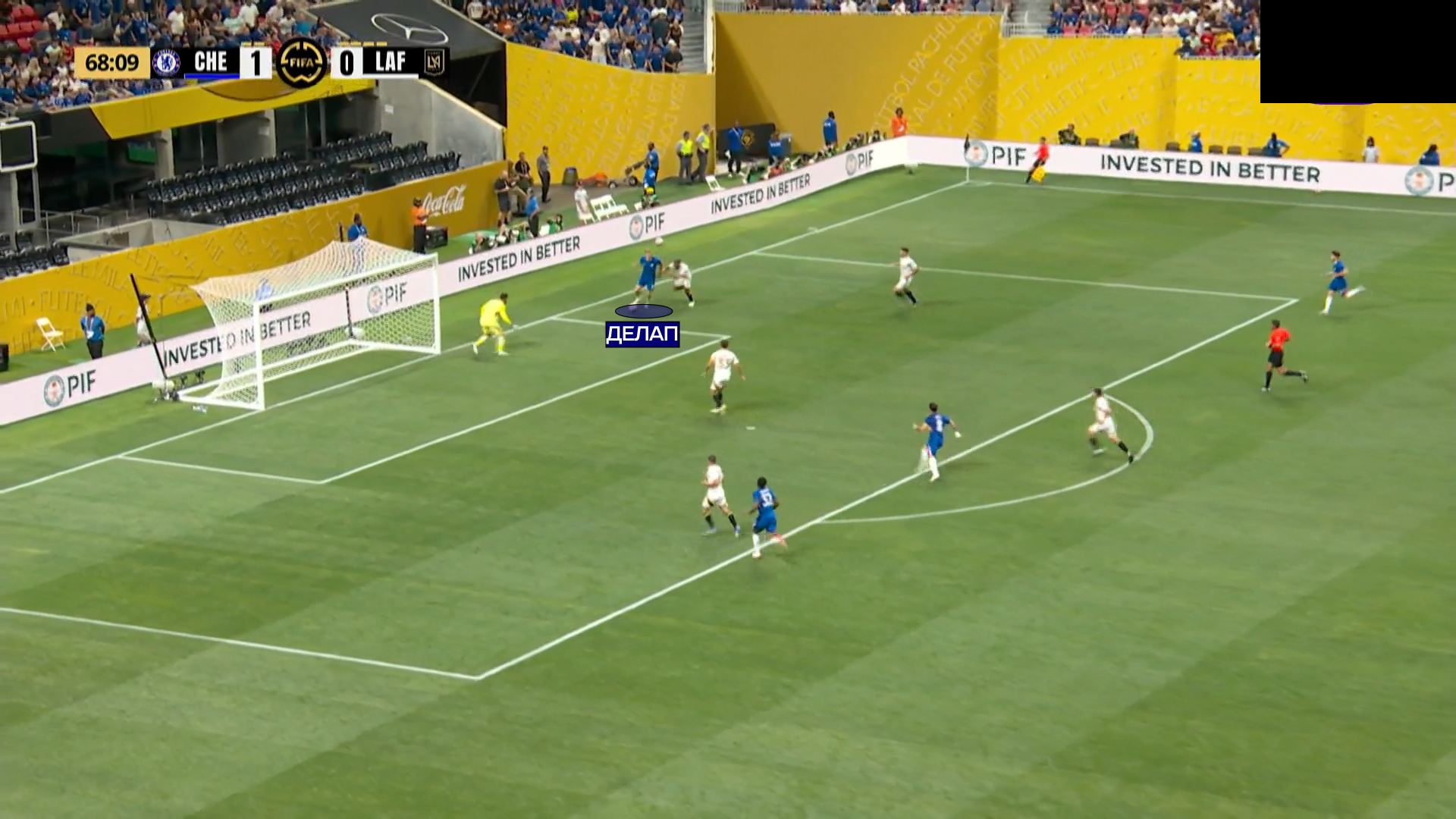 В один тайминг с передачей от Палмера, Делап врывается за спину четвертому номеру «ЛА».