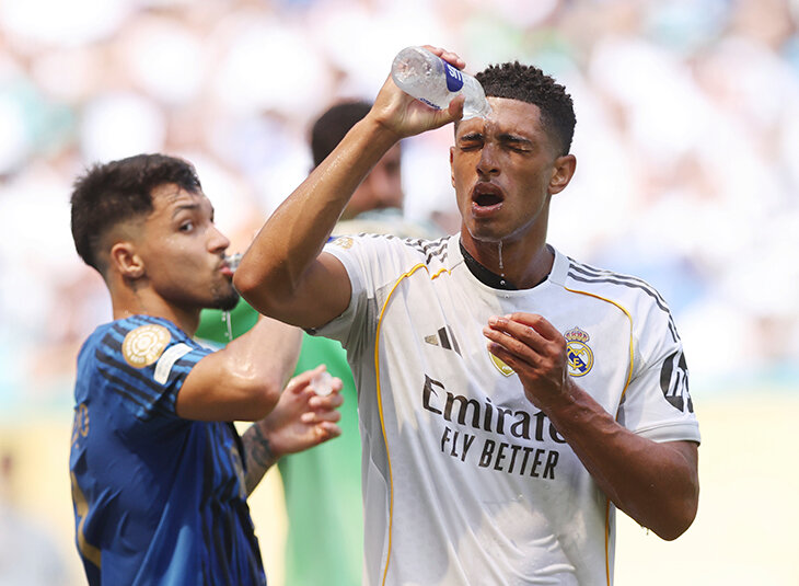 Игроки «ПСЖ», «Ман Сити» и «Реала» отмечали сильную жару, тем более европейским топам играть приходится в основном днем по местному времени – чтобы было удобно вещателям, и их игры шли вечером по Европе, не ночью.