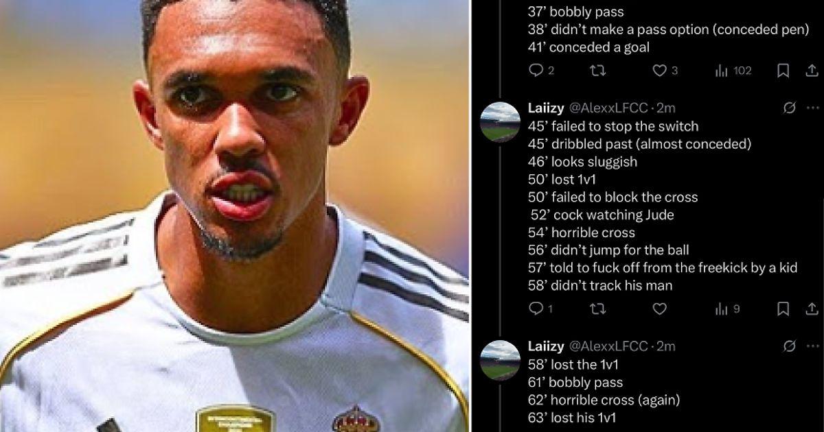 Ошибок оказалось настолько много, что один из фанатов «Ливерпуля» составил подробный список всех недочетов Трента по ходу матча. Вот что он отметил:
