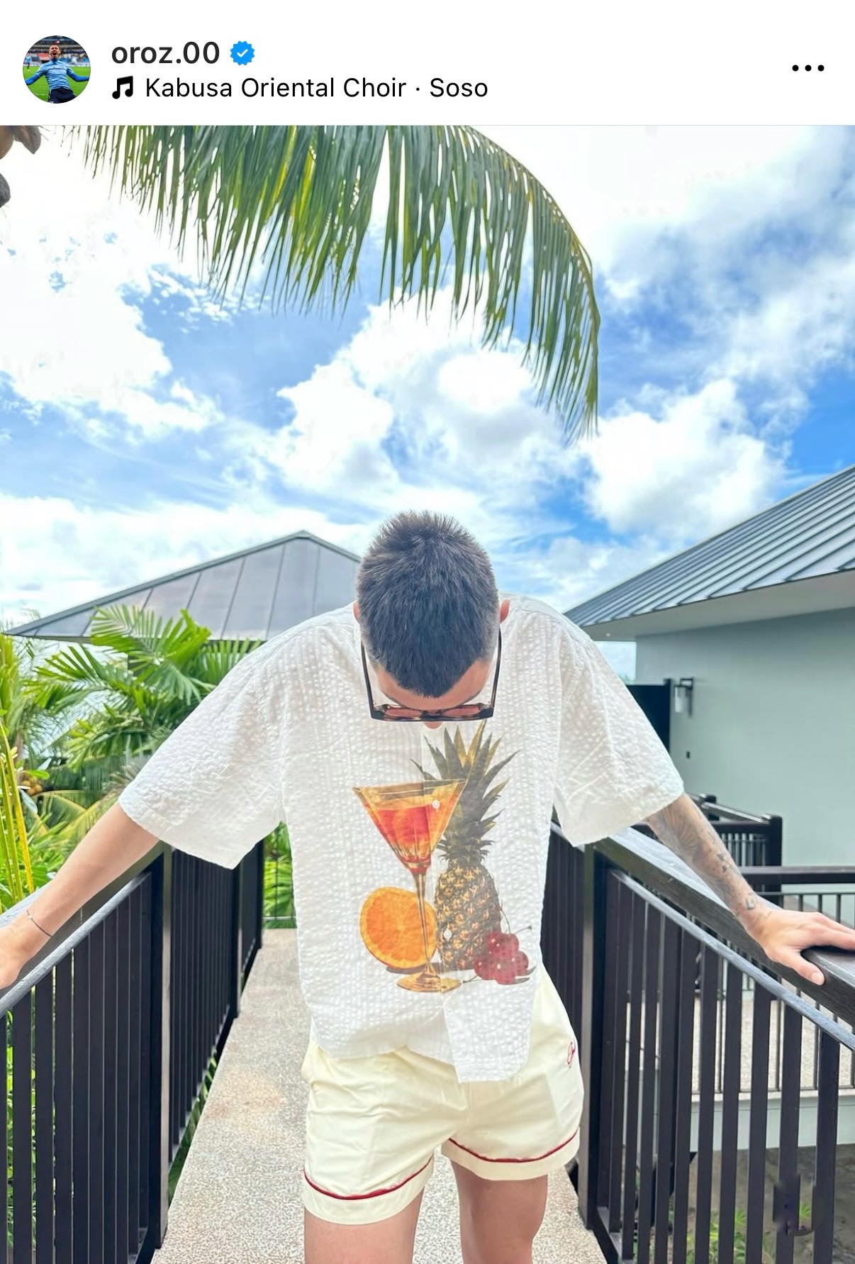 Его одноклубник Алоис Ороз на отдыхе никак не налюбуется на свою бомбическую рубашку.