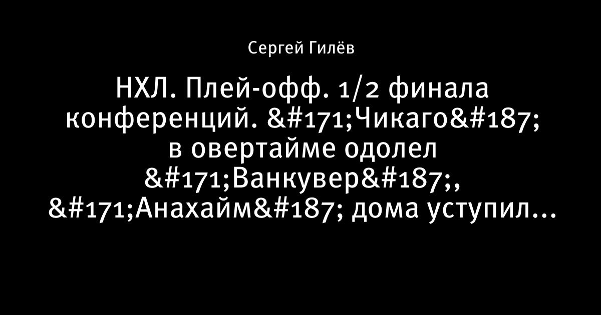 НХЛ. Плей-офф. 1/2 финала конференций. «Чикаго» в овертайме одолел «Ванкувер», «Анахайм» дома уступил «Детройту»