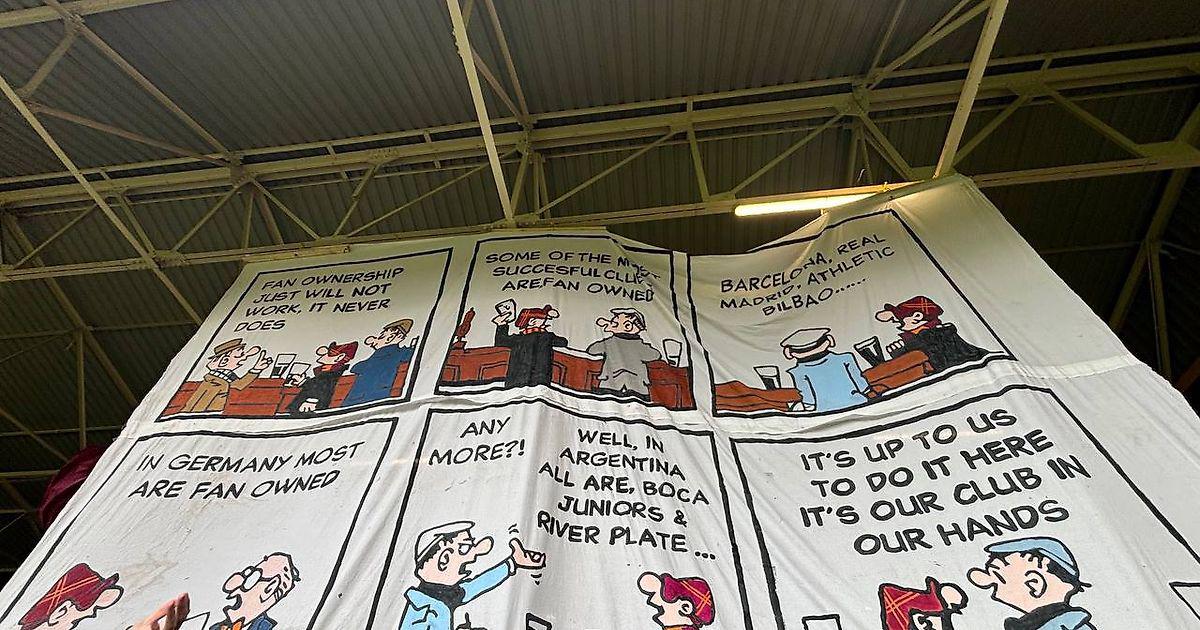 Перф фанатов «Мотеруэлла» на тему возможности управления клубом самими болельщиками, исполненный в стилистике комикса Andy Capp