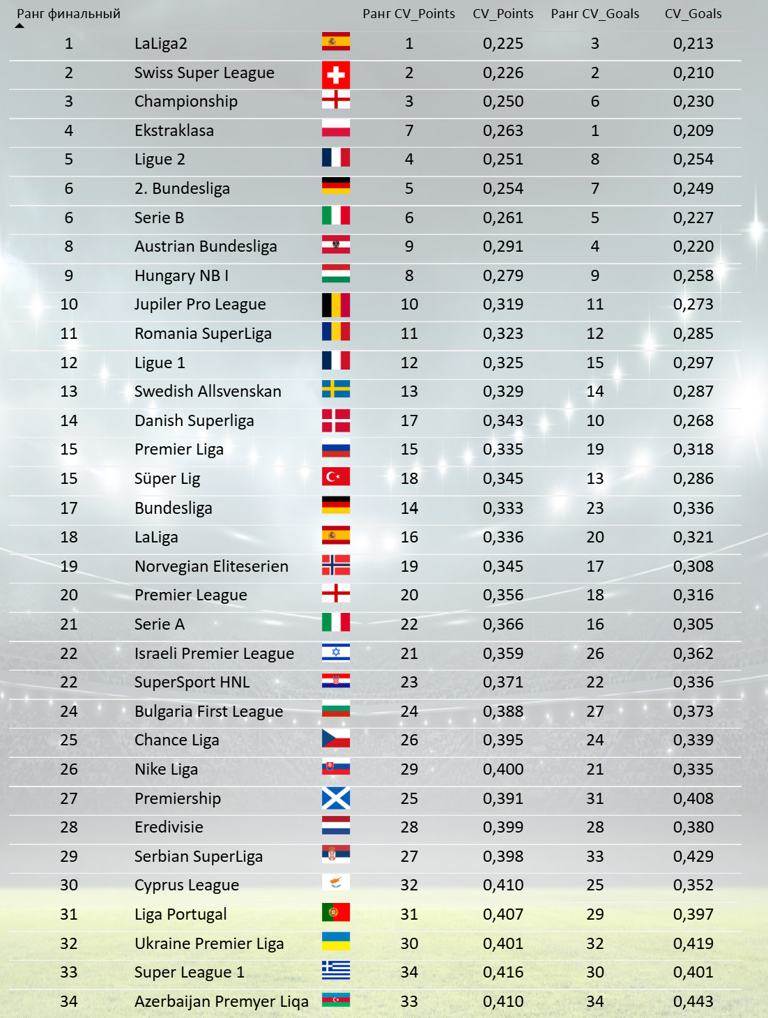 Самые предсказуемые и самые конкурентные лиги: рейтинг на основе турнирных таблиц