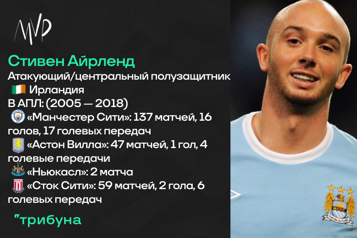 Закрепиться в «Астон Вилле» нашему герою не удалось. Конечно, мешали и травмы. Так, к примеру, провалилась аренда в стан «Ньюкасла» – на инфографике отображено, что за «сорок» Стивен провел всего лишь два матча на уровне Премьер Лиги. Сезон-2011/12 ирландец провел в основе «виллианов», но был далек от своей оптимальной формы. Осенью 2013 года полузащитника арендовал «Сток», но и там засиять по-прежнему довольно молодому футболисту не удалось. За четыре с половиной года в структуре «гончаров» он не забил и пятерки голов, после чего, по сути, ушел из большого спорта – пара месяцев в заявке «Болтона» без единого матча учитываться и сбивать с толку не должны. Айрленд завершил карьеру в 2018 году, всего в тридцать два года. Сейчас ему тридцать девять.
