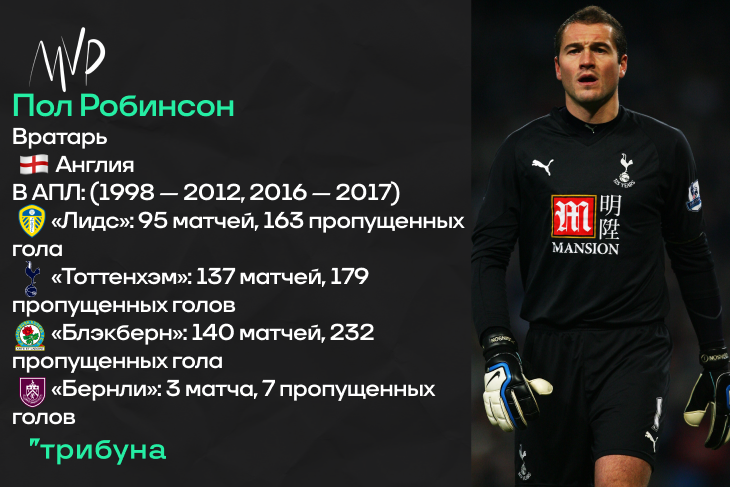 Наверное, справедливой будет точка зрения, заключающаяся в непримечательности Пола Робинсона как футболиста. Но именно вот такие, на первый взгляд обычные игроки, должны упоминаться в подобных материалах. Высокий голкипер сборной Англии – яркий тому пример. Он играл в середняках, вызывался в сборную, ошибался, спасал и довольно долго играл на высочайшем уровне. Типичный представитель вратарской школы тех времен. Кстати, одно преимущество над остальными стражами ворот у Пола все же есть – в сезоне-2006/07 Робинсон, играя за «Тоттенхэм», забил гол прямым ударом от своих ворот (со штрафного). Пострадал тогда «Уотфорд» и, что само любопытное, тот гол стал победным для «шпор» в этом дерби.
