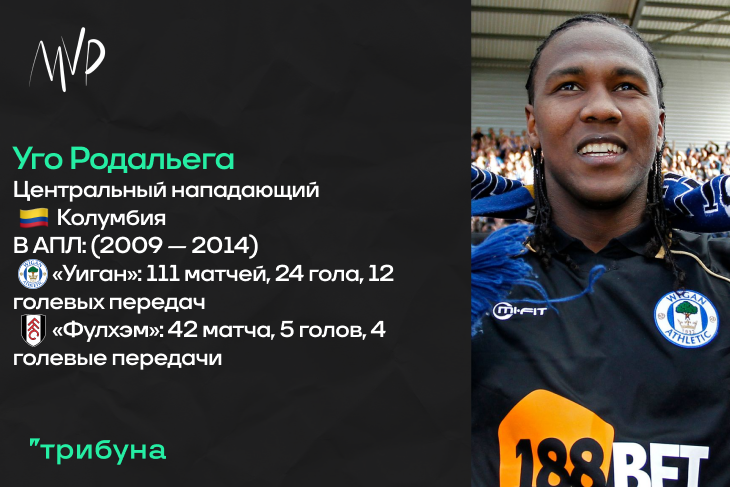 Почему именно Родальега? Причин на то много. Во-первых, это «Уиган». Игроки из этой команды ярким пятном отложились в памяти автора материала, а Уго был одним из лучших из них в ту пору. Вторая причина, конечно, необычный даже для АПЛ той эпохи имидж. Да, афроамериканцев с дредами было немало, но вот латиноамериканцев с подобной прической практически не было. Вкупе с брутальным лицом и крепким телосложением, форвард буквально напоминал потомка индейцев. Ну и, само собой, результативность. Даже подзабыв какие-то игровые моменты, статистика всегда легко даст напоминание о таком игроке – для нападающего клуба-аутсайдера забивал он прилично. А потом был сезон-2011/12, но карьера Родальеги уже шла на спад.