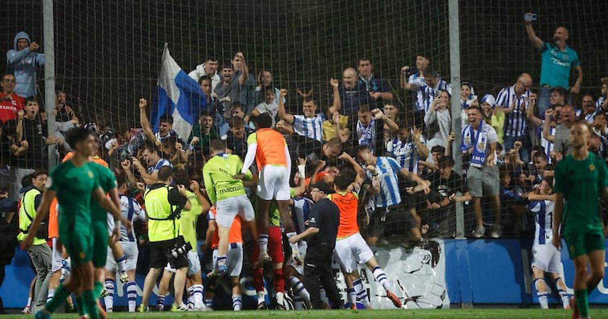 «Реал Сосьедад В» обеспечил себе выход во Второй дивизион в прошлое воскресенье, сыграв вничью с «Настиком». В предыдущем туре резервная команда сине-белых обыграла «Мерида», и после финального свистка на стадионе Хосе Луис Орбегосо в Субиете царила эйфория – болельщики выбежали на поле, чтобы отпраздновать успех вместе с игроками.