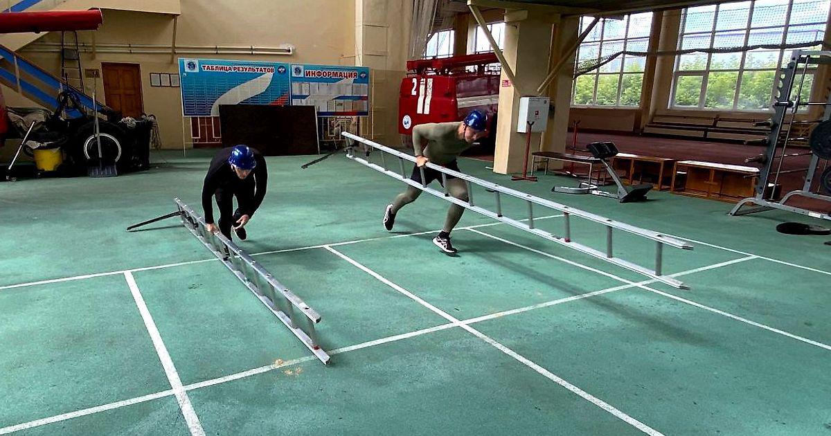 Военнослужащие и сотрудники соревновались в преодолении полосы препятствий и подъему по штурмовой лестнице в окно четвертого этажа учебной башни.