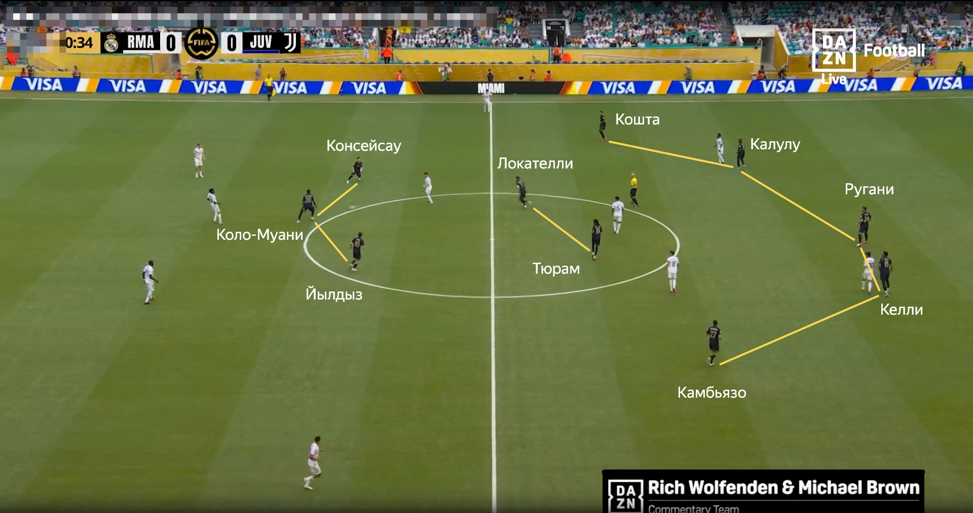 Команда Тудора выстраивалась в схеме 5-2-3 с узким расположением игроков в атакующей тройке. В первую очередь «Ювентус» стремился именно минимизировать риски и давать меньше свободы сопернику.