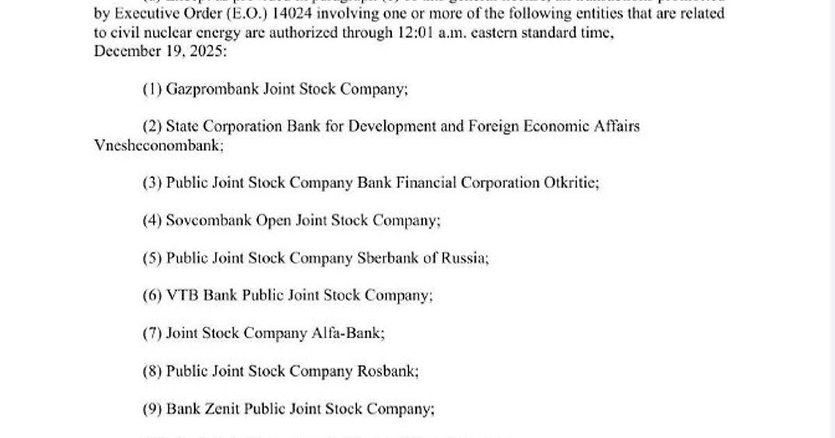 США частично ослабили санкции в отношении России. Минфин США исключил ряд российских компаний, включая ВЭБ — титульный спонсор ПФК ЦСКА