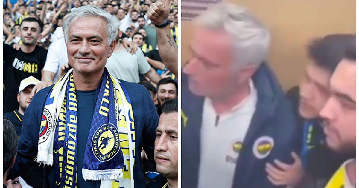 🎥 Сумасшествие от фаната «Фенербахче»: увидел Моуринью в лифте и поцеловал его в плечо🙈