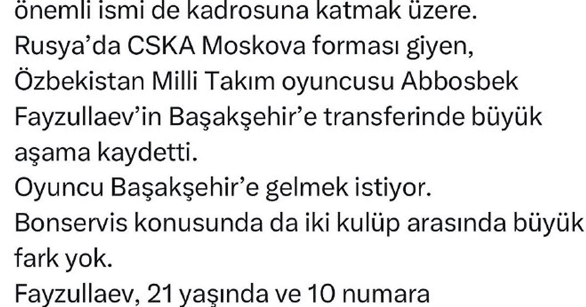 Между ЦСКА и «Истанбул Башакшехиром» достигнут большой прогресс по трансферу Файзуллаева — Osman Altunterim