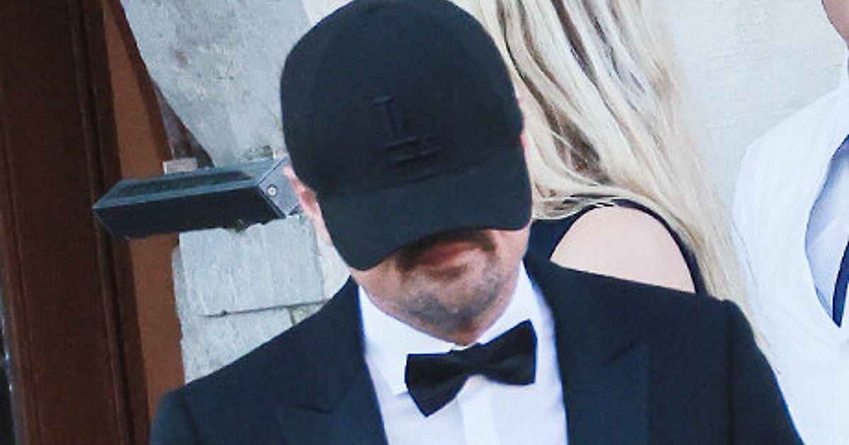 На публике актер почти всегда маскируется: головным убором, очками, и пакетами, и руками. Доходит до нелепого: в прошлом месяце на свадьбе Джеффа Безоса и Лорен Санчес Ди Каприо скомбинировал бейсболку со смокингом.