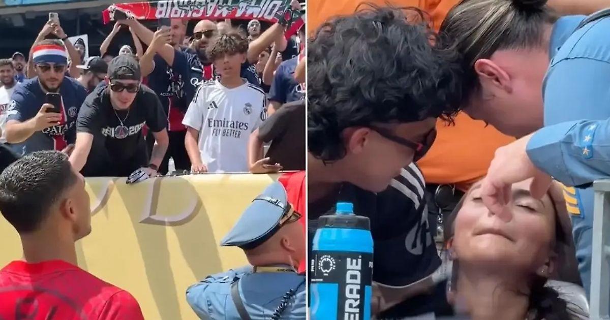 Во время тренировки перед матчем Клубного чемпионата мира между «ПСЖ» и «Реалом» Ашраф Хакими попал мячом в болельщицу на трибунах.