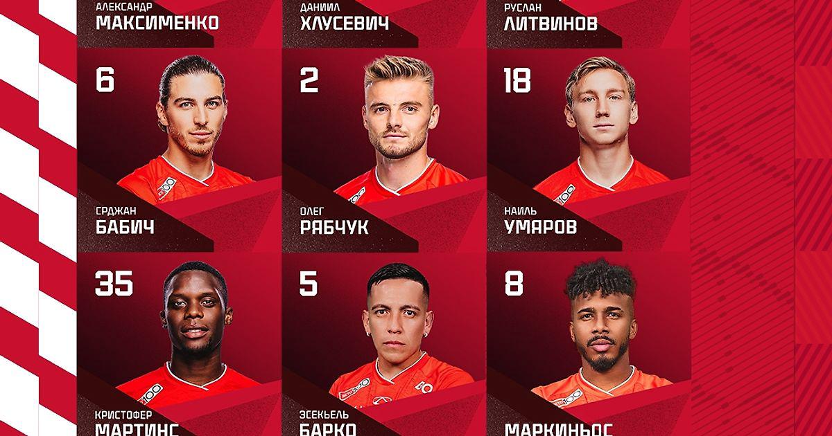 «Спартак»: Максименко (к), Бабич, Рябчук, Умяров, Барко, Мартинс, Литвинов, Заболотный, Маркиньос, Хлусевич, Солари.