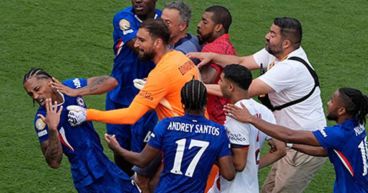 У «ПСЖ» сдали нервы после разгрома от «Челси» (0:3) в финале клубного чемпионата мира. Жоау Невеш дернул Марка Кукурелью за волосы и получил красную, а Луис Энрике потом зачем-то вцепился в Жоао Педро.