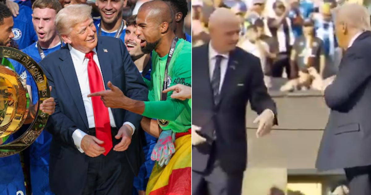 После финала Клубного ЧМ Дональд Трамп неожиданно оказался на подиуме с футболистами «Челси». Да-да, прямо в момент, когда команда праздновала победу, экс-президент США стоял рядом и выглядел как один из игроков.