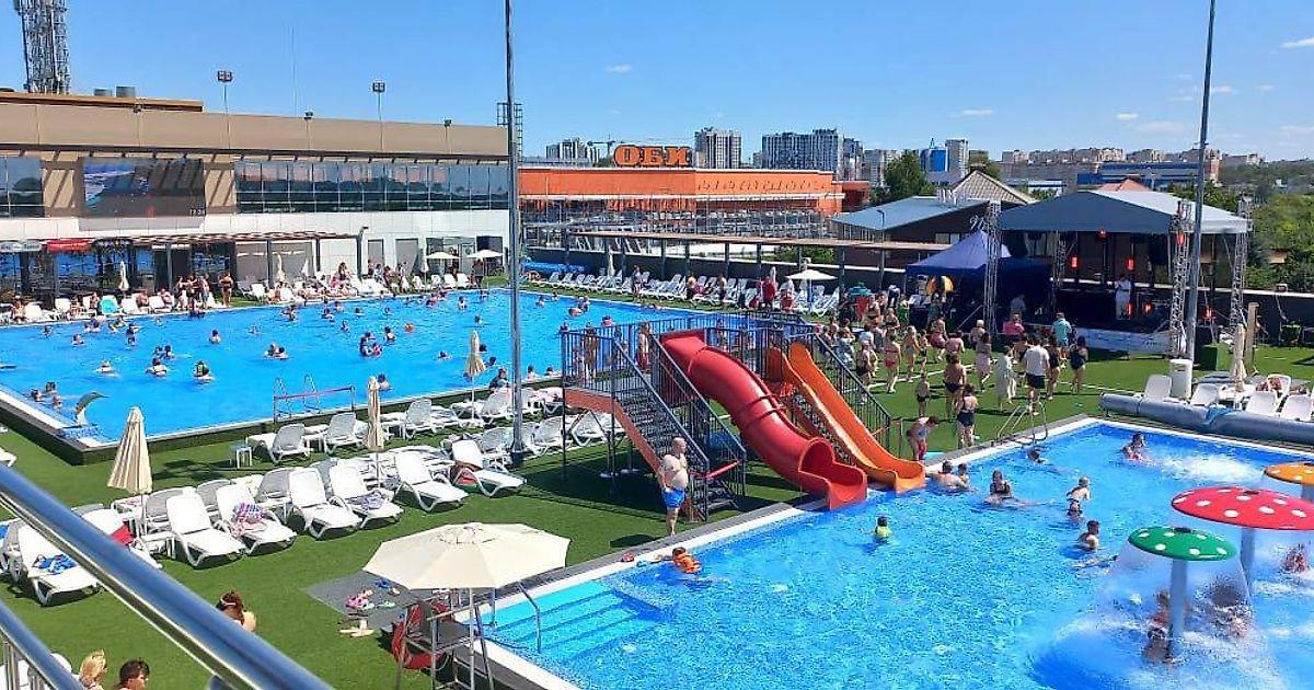 Купальная зона включает несколько уникальных объектов: бассейн «Мертвое море» с высокой концентрацией соли (200 г/литр), развлекательный комплекс «Приводнение» с экстремальными горками, детский надувной аквапарк, термальные бассейны с постоянной температурой +34-36°C.